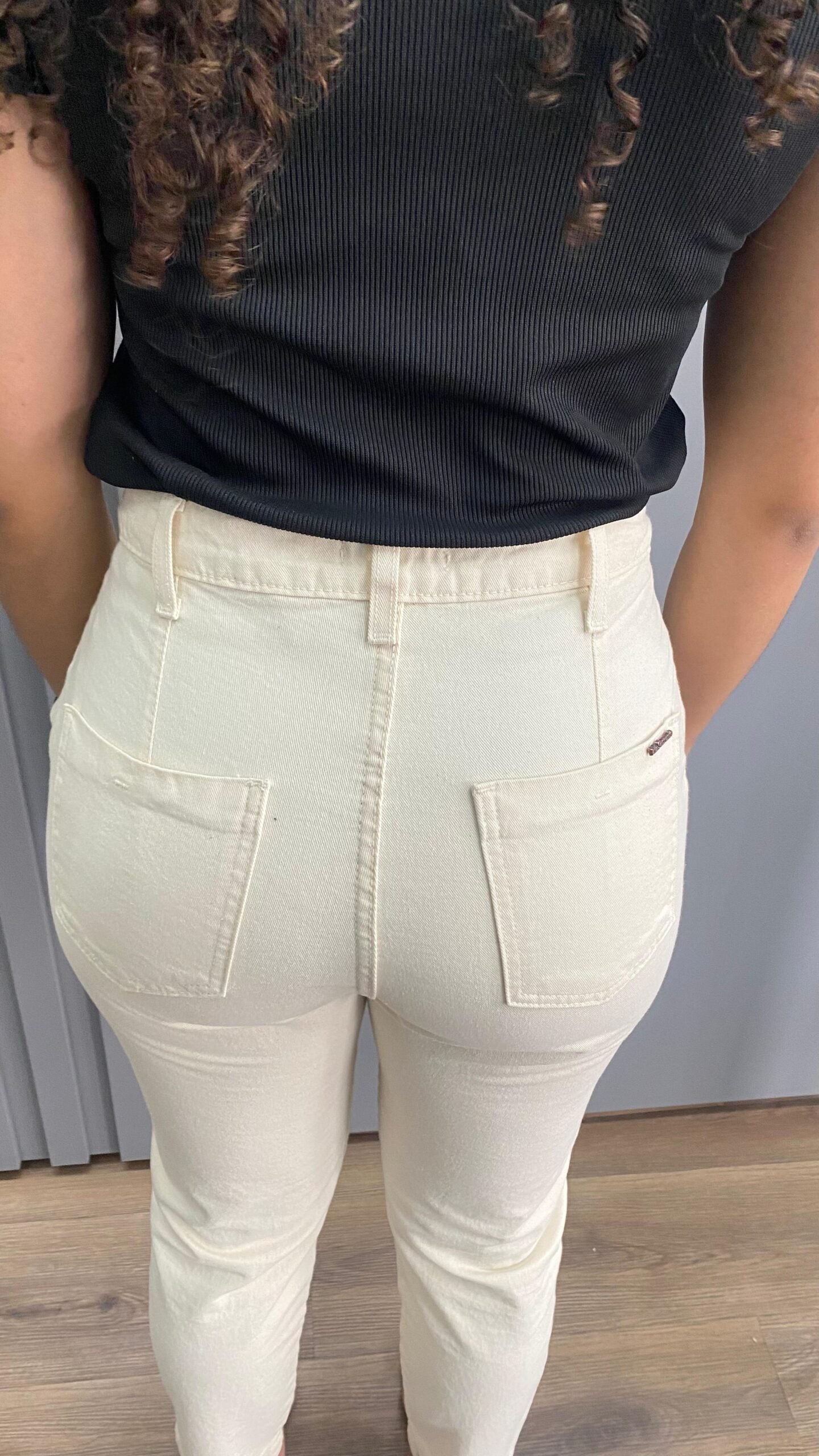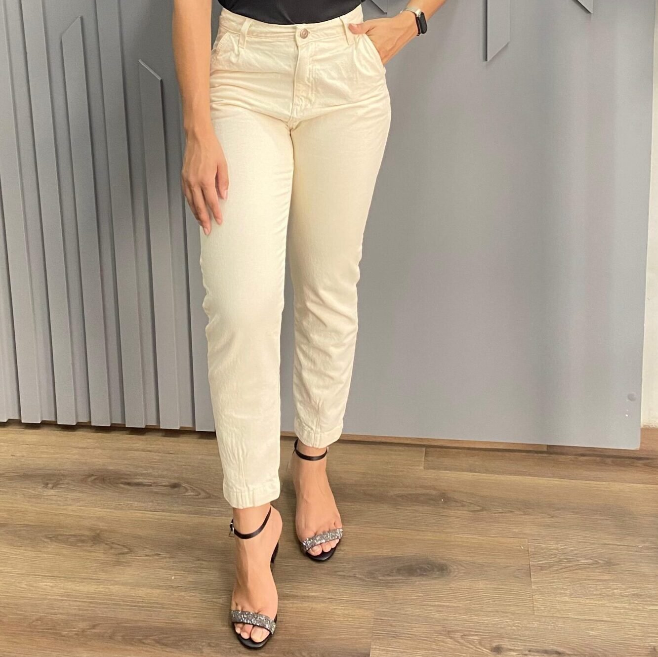 A calça jeans slouch off white é a combinação ideal de conforto e estilo. Com modelagem solta no quadril e afunilada na barra, garante um visual moderno e despojado, perfeito para o dia a dia. Confeccionada em 100% algodão, oferece toque encorpado, caimento estruturado e alta durabilidade. A cor off white traz leveza e sofisticação, tornando a peça versátil para composições casuais e elegantes.
