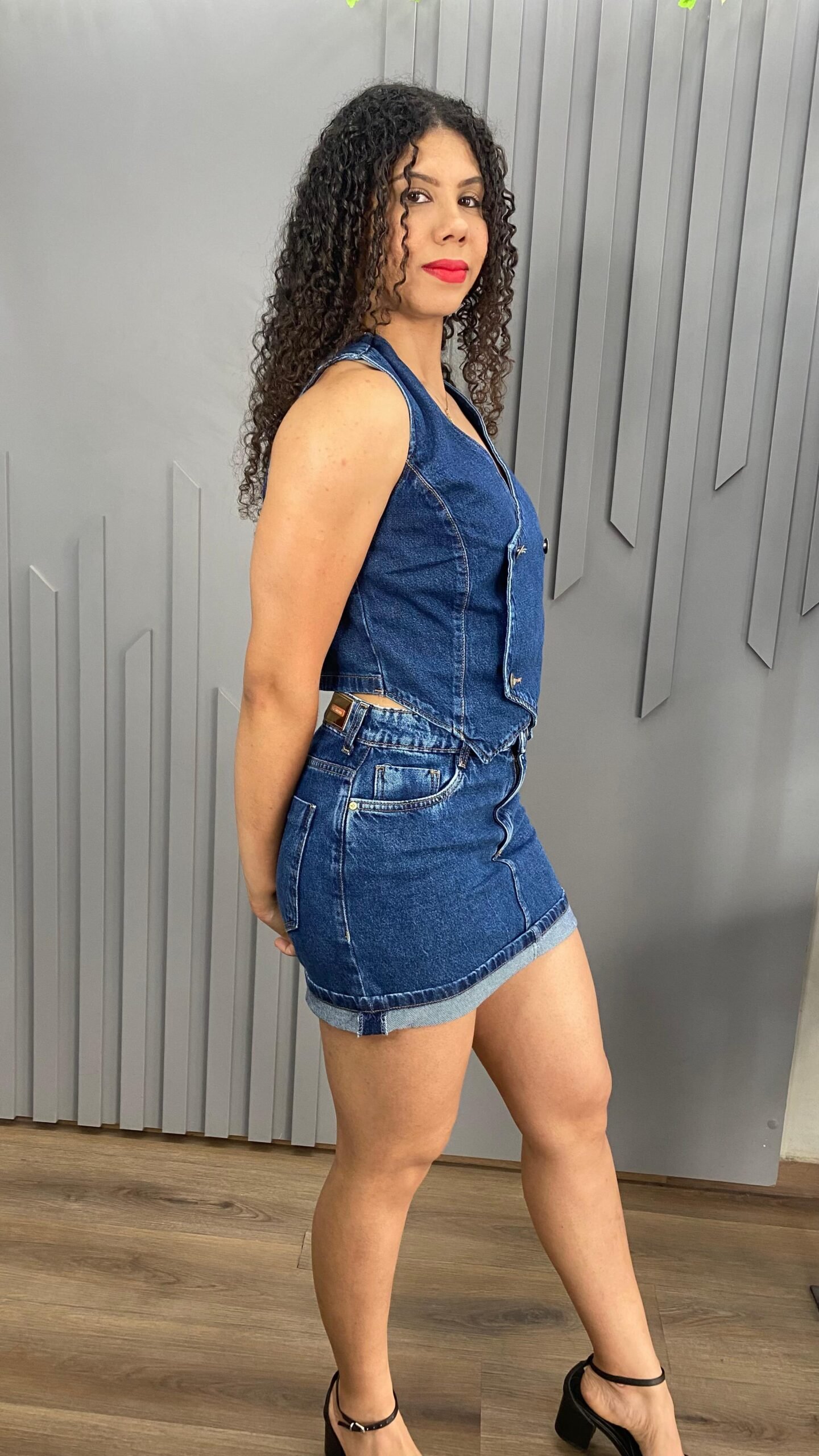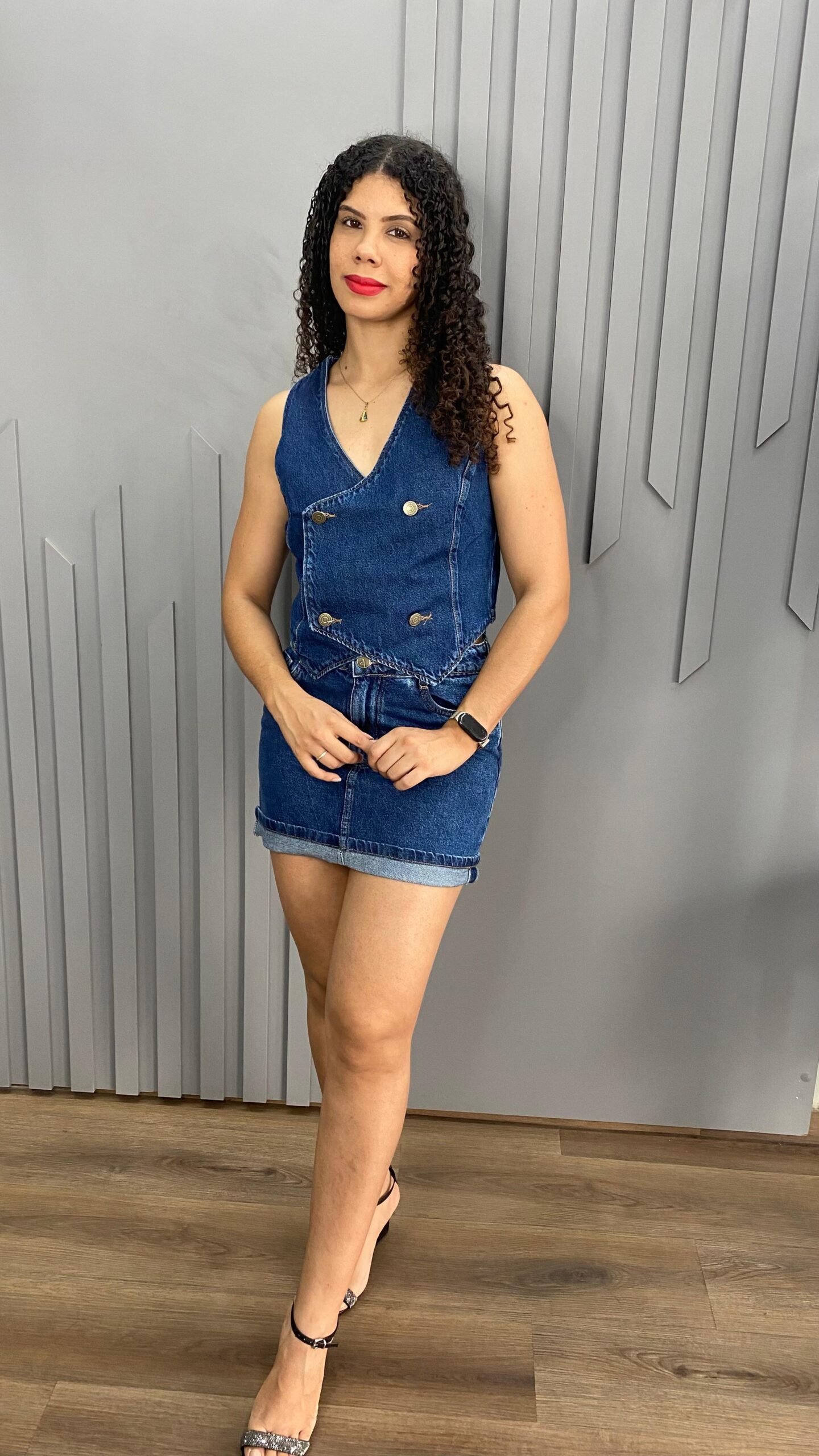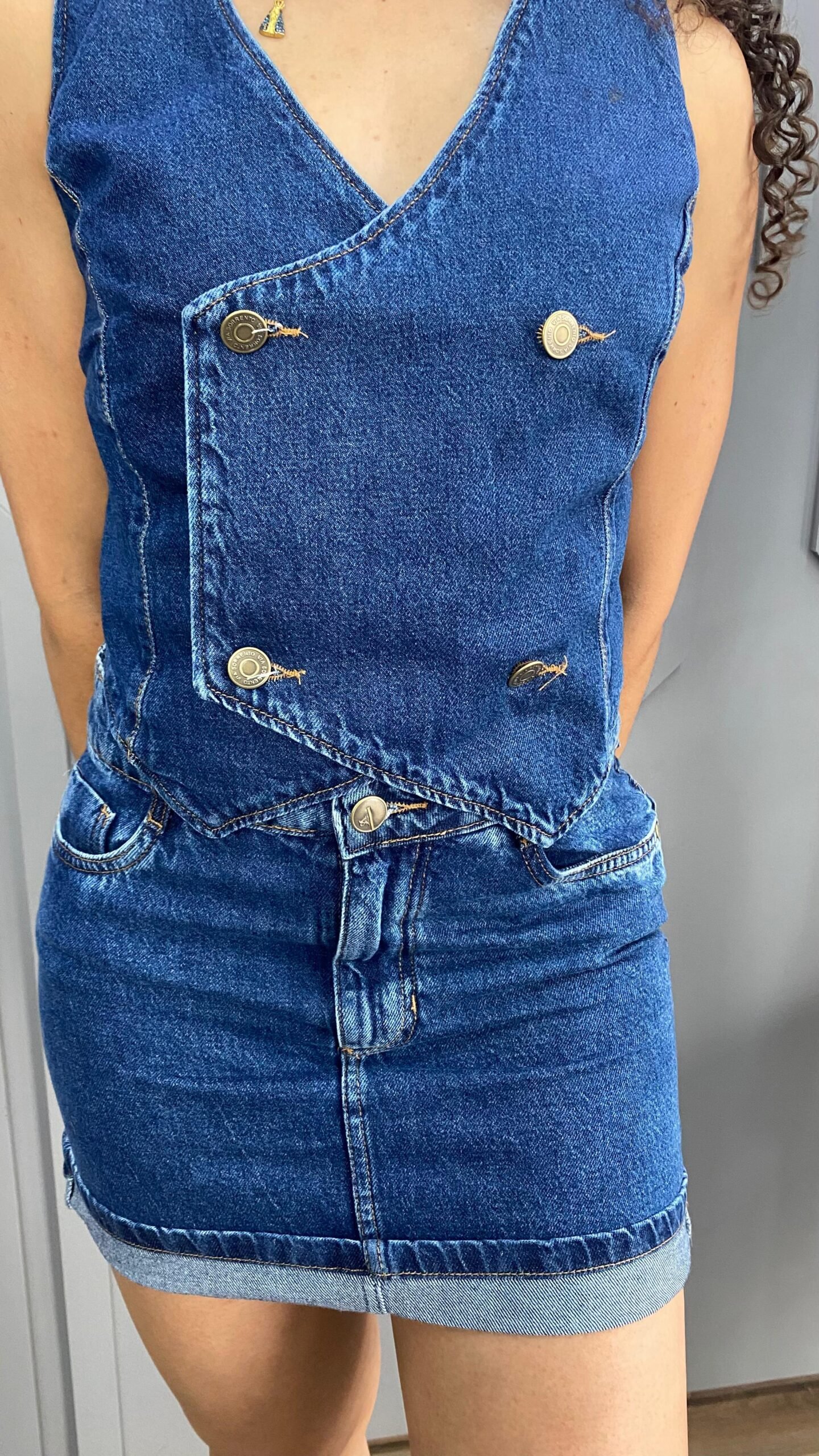 O colete jeans 100% algodão traz um design moderno e marcante, perfeito para quem busca estilo e personalidade. Ele possui fechamento frontal transpassado, com quatro botões decorativos posicionados de forma cruzada, dando um visual diferenciado e sofisticado à peça. Feito em jeans estruturado, garante durabilidade, caimento impecável e combina facilmente com produções casuais ou urbanas.
