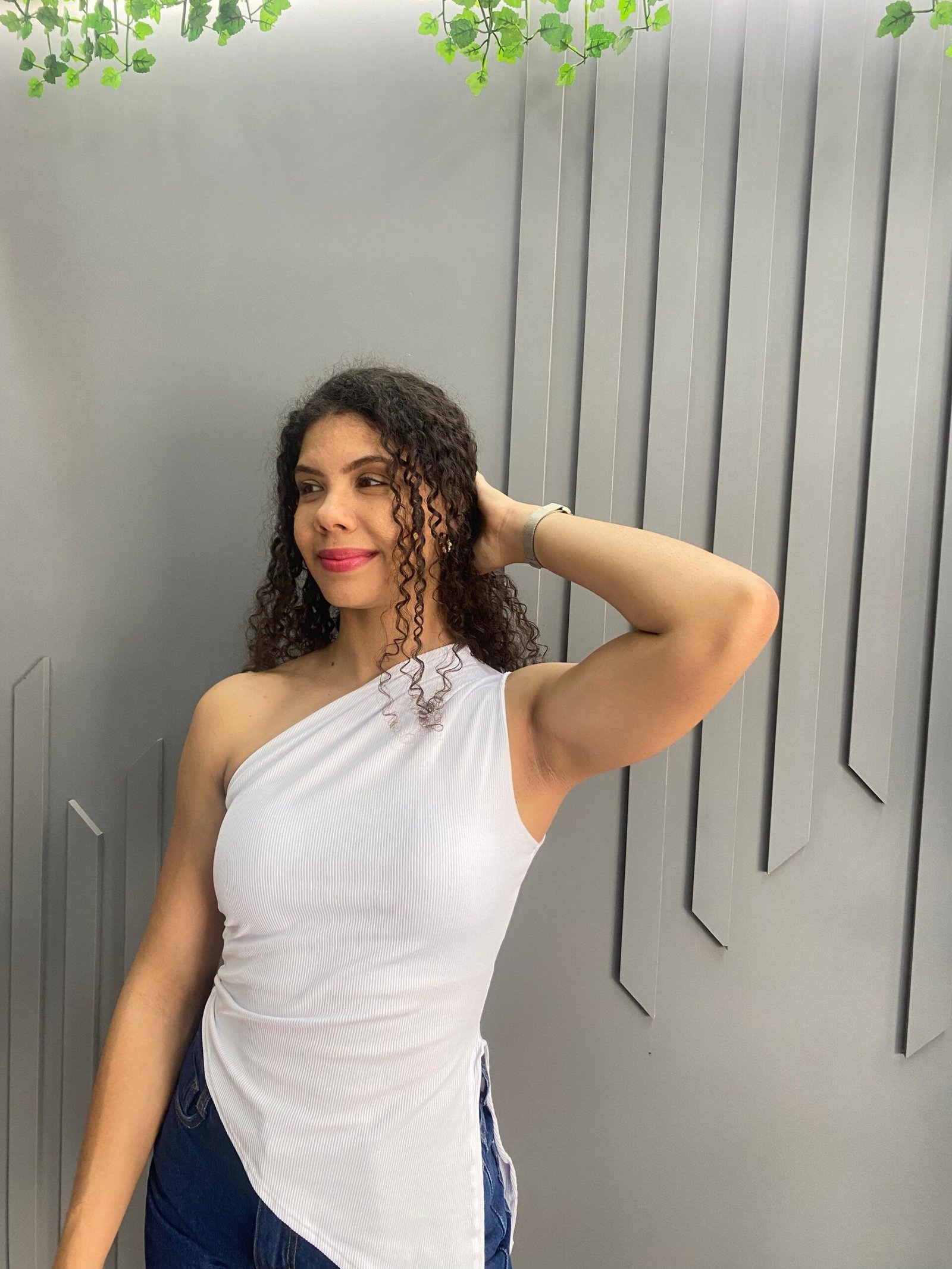 A blusa de um ombro só (mula manca) é a peça perfeita para um visual moderno e sofisticado. Com um design que se destaca pela sua assimetria elegante, ela valoriza o colo e a silhueta de forma sutil e charmosa. Seu caimento perfeito garante conforto e um toque de ousadia, sendo ideal para compor looks que vão do casual chic a eventos especiais. É uma peça versátil que combina com saias, calças de alfaiataria ou jeans, ideal para ocasiões que pedem um toque de originalidade.