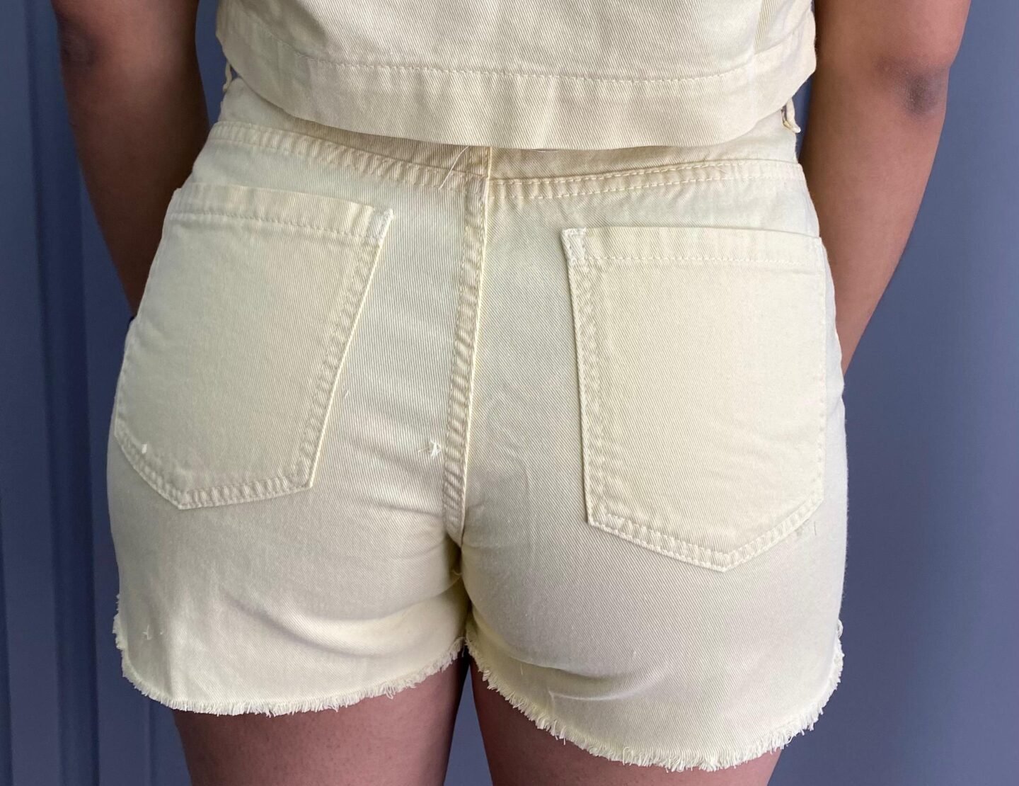 & Free ShippingO Short Jeans Mom Trend Amarelo manteiga é a escolha ideal para quem busca conforto e estilo em uma peça cheia de personalidade. Confeccionado em jeans premium Canatiba 100% algodão, garante resistência, caimento estruturado e toque confortável. Com modelagem mom trend, que valoriza a cintura alta e o caimento mais solto nas pernas, proporciona um visual moderno e atemporal. A cor Amarelo manteiga adiciona leveza e originalidade, perfeita para looks casuais e cheios de frescor.